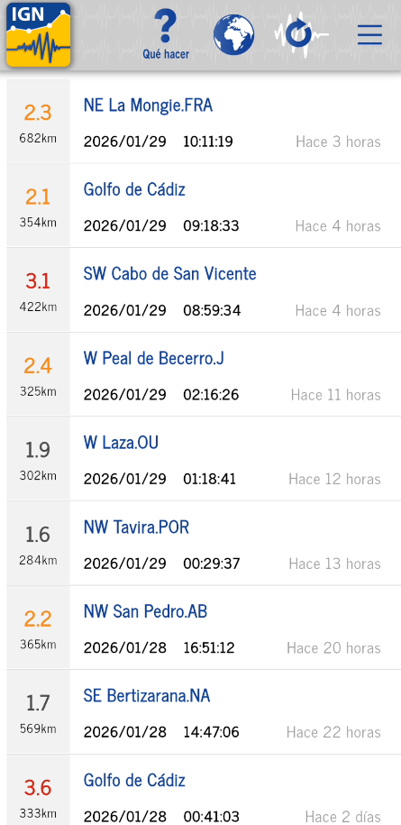 Aplicación oficial de la Red Sísmica Nacional (IGN. Ministerio de Transportes y Movilidad Sostenible) que permite la recepción y visualización de todos los eventos sísmicos de España y alrededores en dispositivos Android.