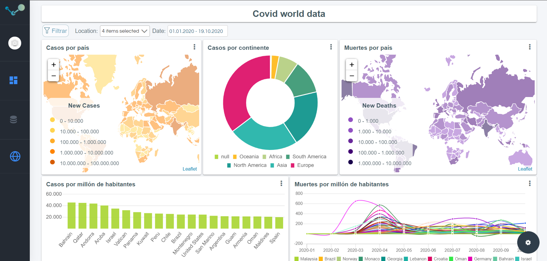 Edalitics works as a corporate and public data platform: it can connect to databases and web services, and it also supports CSV files that the user uploads to enrich their model. From there, dashboards, KPIs and email alerts are created, and private or public reports are published for different decision profiles, with access control and traceability. It allows you to have unlimited users, which makes it interesting for large organizations with many users.