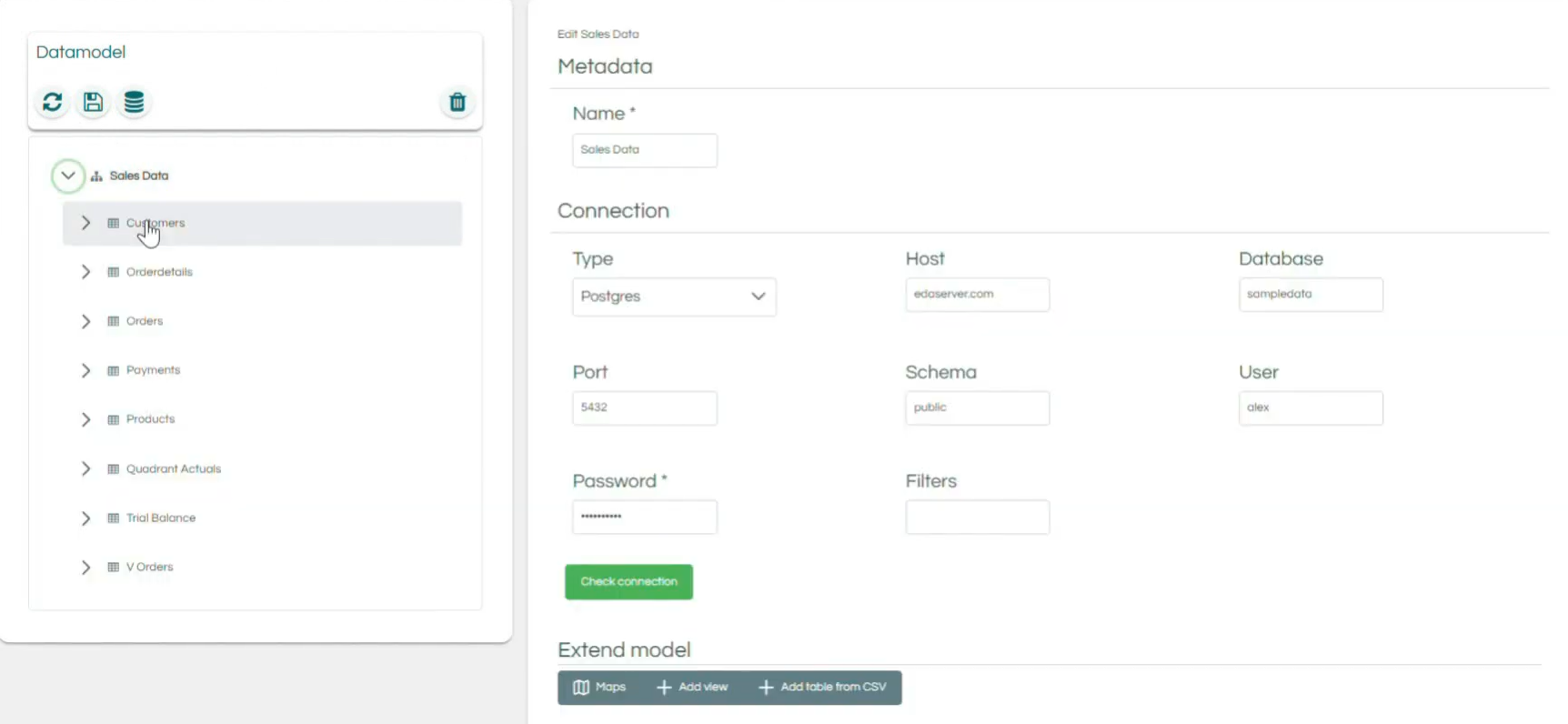 Edalitics is a cloud-based analytics service that allows you to connect data, model it, create reports and dashboards without deploying your own infrastructure and without technical knowledge. It is based on EDA (Enterprise Data Analytics), the open source platform of the company Jortilles and is offered as SaaS (Software as a Service), which reduces technical complexity: the user accesses through a browser, selects their sources and builds visualizations by simply dragging and dropping, or through SQL.