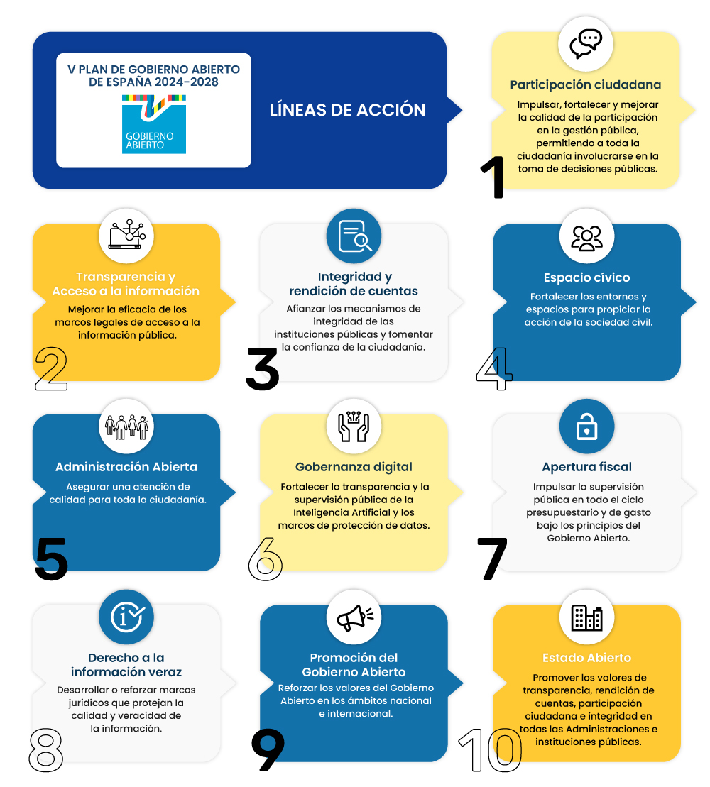On October 6, the V Open Government Plan was approved, an initiative that gives continuity to the commitment of public administrations to transparency, citizen participation and accountability. This new plan, which will be in force until 2029, includes 218 measures grouped into 10 commitments that affect the various levels of the Administration.