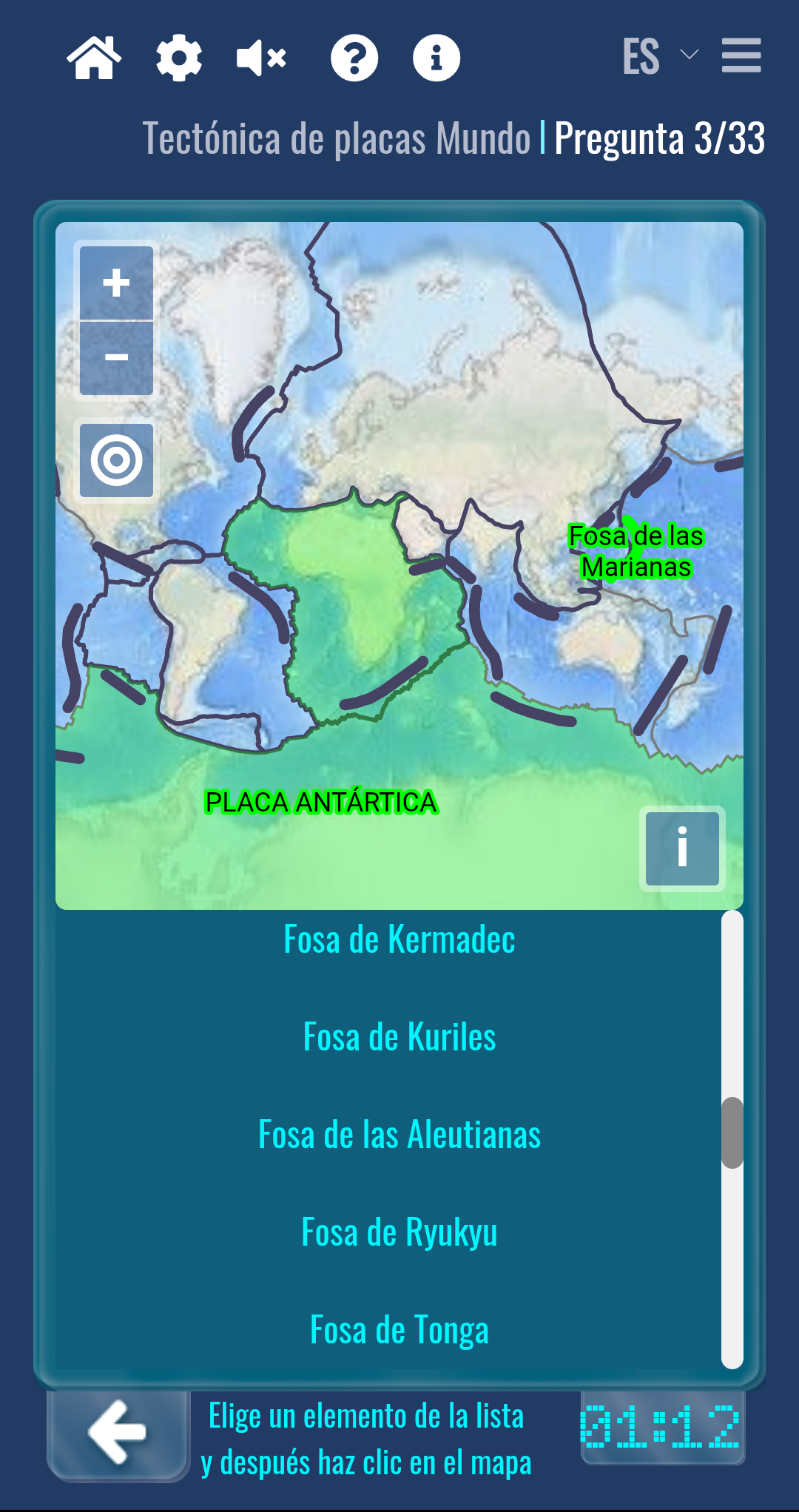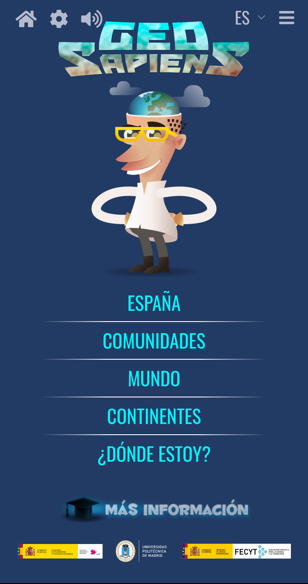 Consta de diferentes juegos agrupados según el ámbito geográfico (España, comunidades autónomas, el mundo completo o por continente) para poner a prueba tus conocimientos del paisaje, el relieve, los ríos, los accidentes costeros, las banderas, las placas litosféricas, los países y capitales, etc.