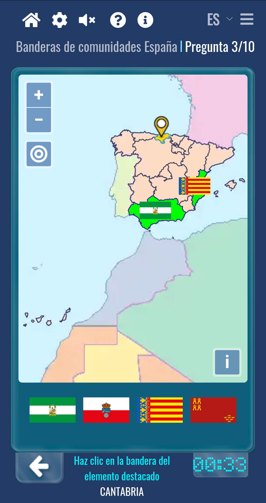- «Localizar todos», para jugar con todos los fenómenos geográficos.