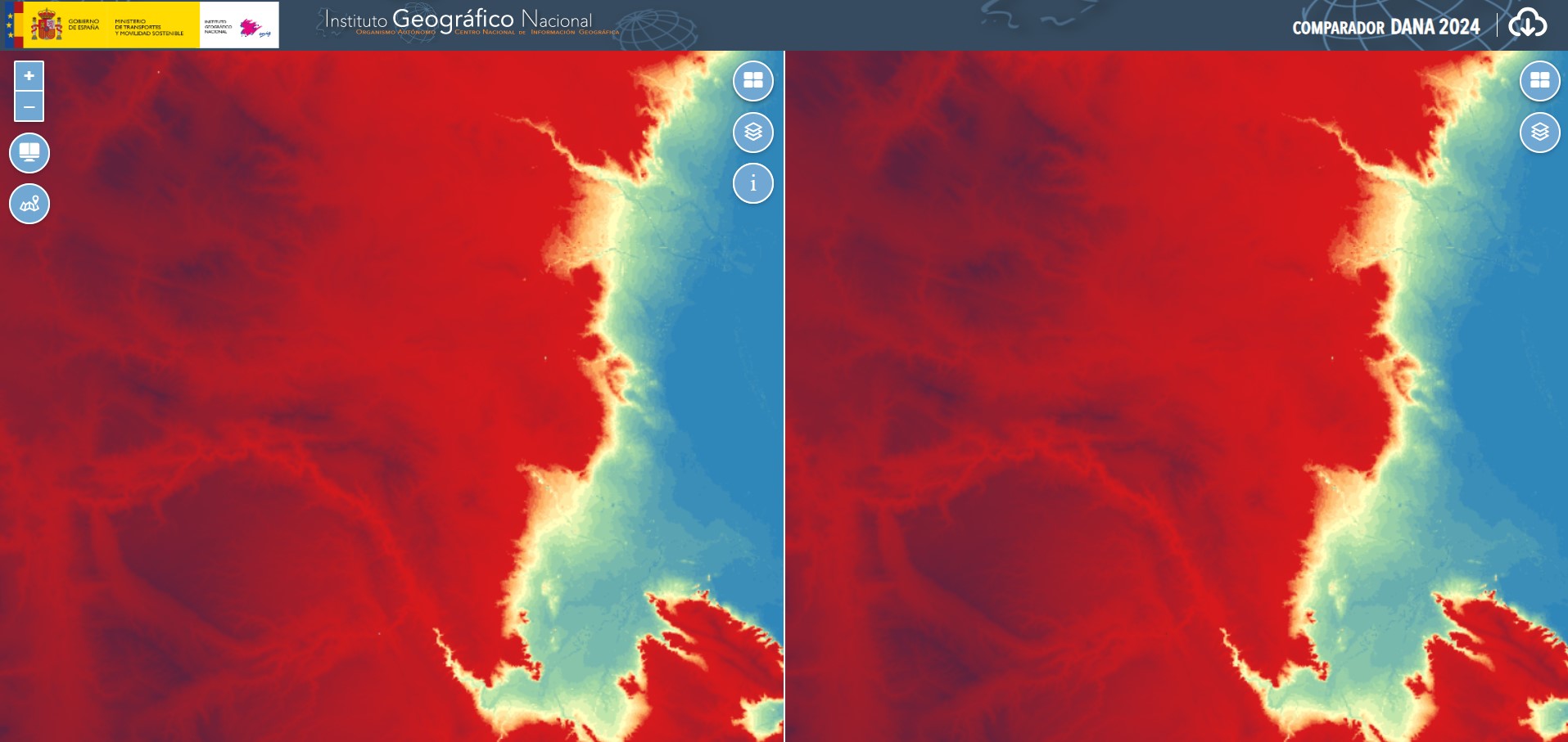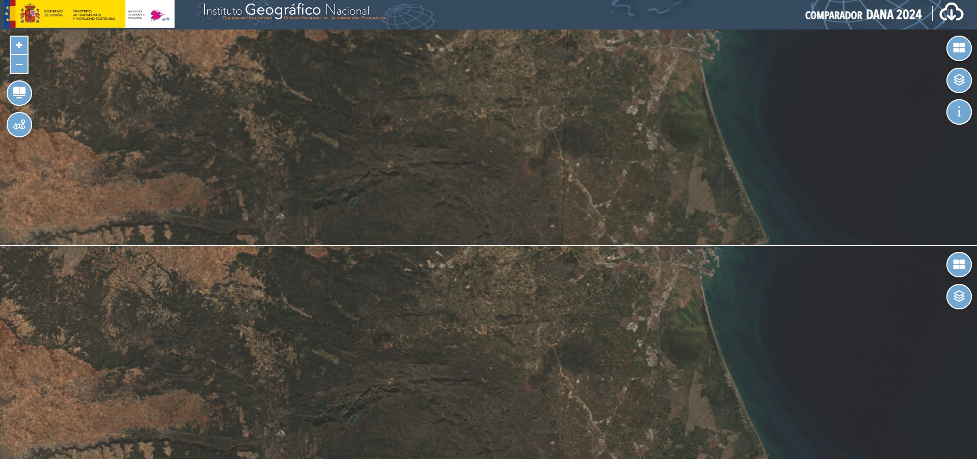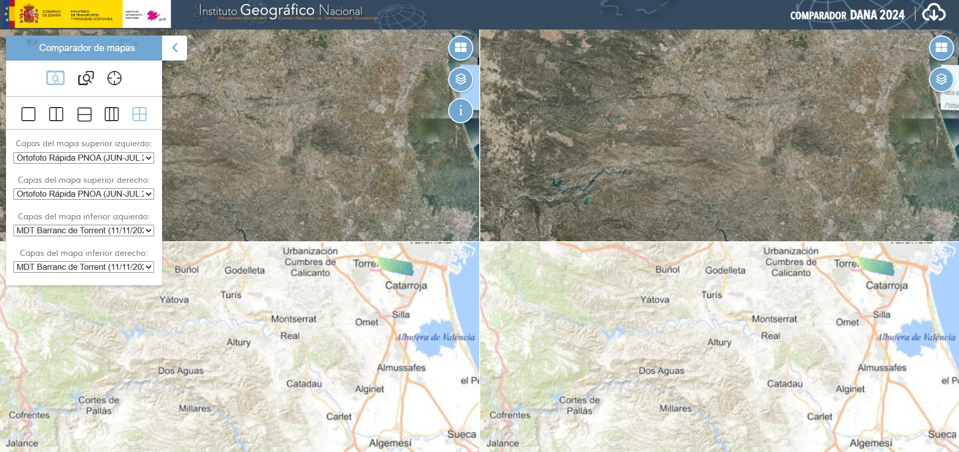 El Centro Nacional de Información Geográfica (CNIG) ha desarrollado este comparador de información del territorio afectado por la DANA del 29 de octubre de 2024.