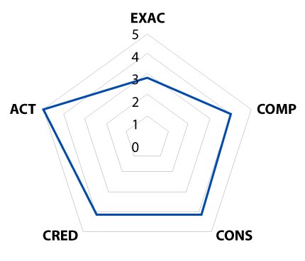 - Shift from quantitative to qualitative value: In order to provide a final quality result, it is decided to use another weighted sum; in this case, all dimensions have the same weight. Based on the above aggregated results of the above characteristics: Accuracy: 95, Completeness: 87, Consistency: 90, Credibility: 88, News: 93, a quality level of 90 out of 100 is determined for the repository. Finally, it is necessary to move from this quantitative value of 0 to 100 to a qualitative value. In this particular example, using the percentage-based quality level function, it is concluded that the quality level of the repository, for the analysed property, is 4, or "Very Good".