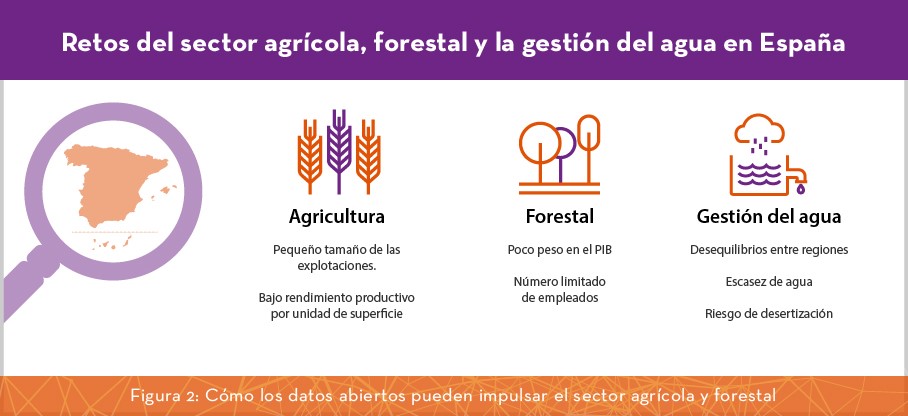 Para profundizar en esta problemática y en sus posibles soluciones, desde la Iniciativa Aporta hemos elaborado el informe “Cómo los datos abiertos pueden impulsar el sector agrícola y forestal”. El objetivo del informe es impulsar la utilización de datos abiertos en el proceso de transformación digital de los sectores agrícola y forestal. De forma adicional, el informe también pone foco en la gestión del agua como elemento de gran importancia en la cadena de valor.