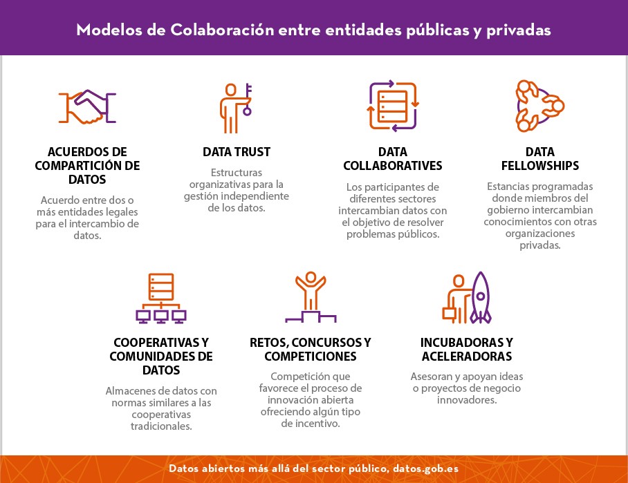 En la segunda parte del informe nos centraremos en analizar cuáles son los modelos de colaboración que pueden surgir entre el sector público y otros sectores para dar lugar a actuaciones conjuntas que consigan mejorar la gobernanza, disponibilidad y reutilización final de los datos, mostrando nuevamente las diferencias y semejanzas entre cada uno de ellos y distintos ejemplos de cómo se han puesto en práctica hasta el momento.
