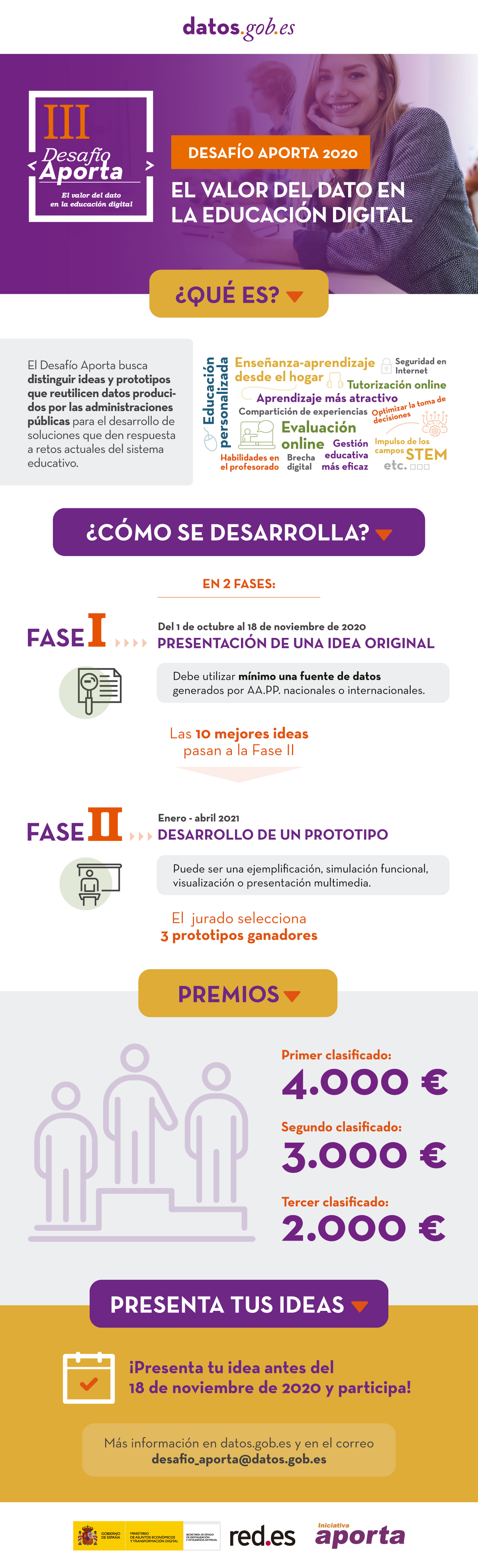 Un año más, la Iniciativa Aporta lanza el Desafío Aporta, una competición encaminada a promover la creación de soluciones basadas en información de sector público, que ayuden a resolver retos en sectores concretos que afectan al conjunto de la sociedad. En esta ocasión, el sector elegido es la educación.
